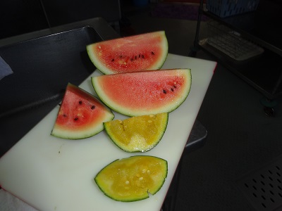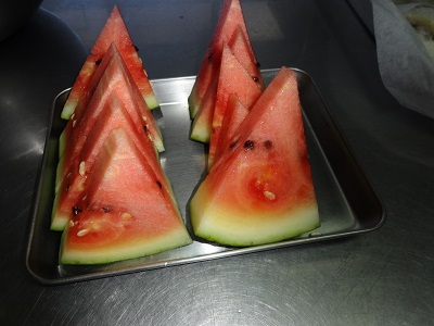 エントリー 収穫の時 2015/07/15 17:15 まなざし スイカを収穫。さっそく切って頂きました。甘くておいしいスイカでした。昨年の西瓜は種が多くて、食べても食べても種という感じでしたが、今年の西瓜は種が少なくてとっても美味しかったで~す。ご馳走さまでした。 この記事のURL ページ移動 記事一覧 きゅうりの収穫お話クラブ