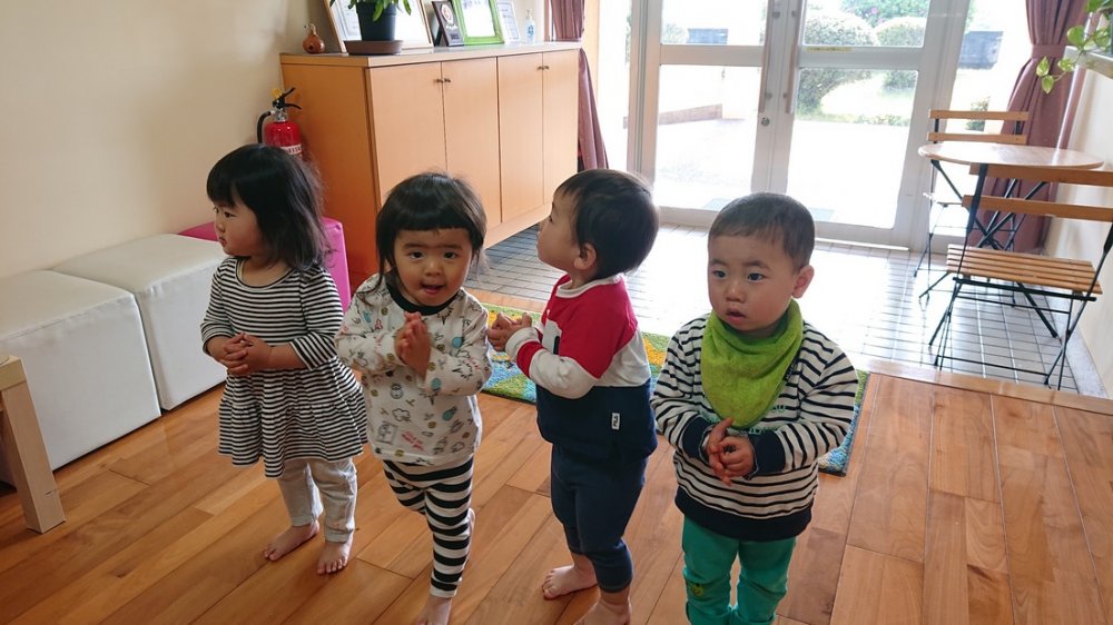 先日、4,5月のお友だちと先生方のお誕生日会が行われました。園長先生のお話とマジックショー、幕間に「サンタ・マリア」の歌のプレゼント、先生たちからのプレゼントがありました。
