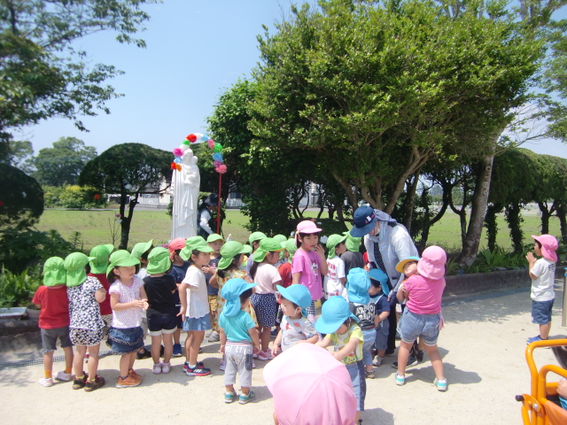 「こわい病気が早く終わりますように。」マリア様に取次ぎを願い、今日も一日元気に過ごせるようにお祈りしてからお出かけしました。その後、「はたらくくるま」に興奮してしまいフェンスの横をなんどもかけっこしました。