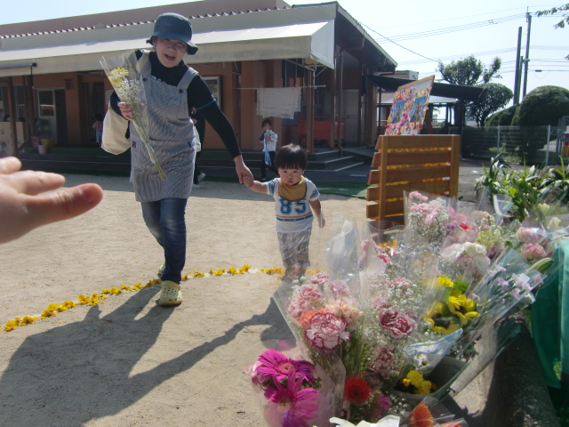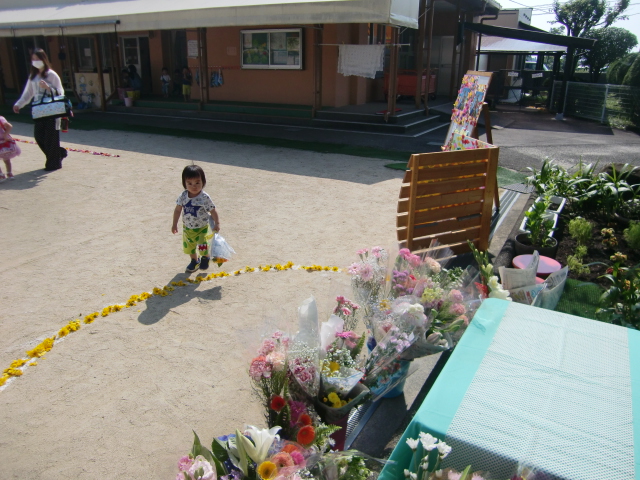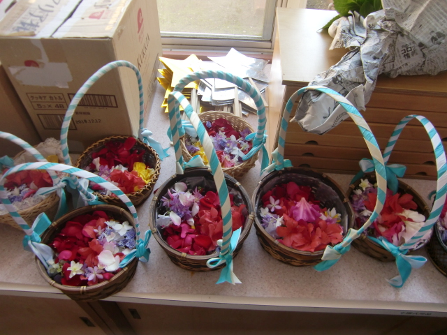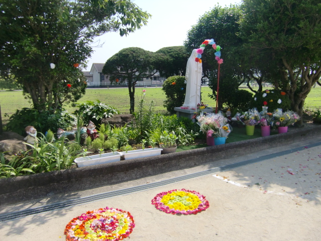 と、にこやかに教えてくださいました。各々持ってきたお花をお捧げしています。また、各方面から花まきのためのお花、お捧げするためのお花…たくさんのお花…、花びらが届けられました。園長先生が、マリア様に何でもお話しするといいですよと、悲しいことも、さみしいことも、もちろんうれしいことも…マリア様は直接はお返事を下さいませんが聞いてくださっていますよ、だからなんでもお話しするといいですよ、と。また後日お伝えしたいです。