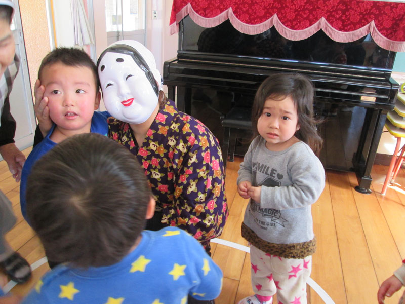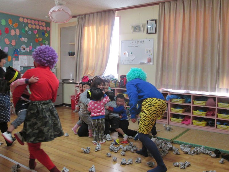 エントリー 人形劇を観ました 2017/02/27 14:30 まなざし 楽しみにしていた人形劇をみました。 初めは暗くなって不安で泣き出してしまう子もいましたが、「3匹のこぶた」の劇では食い入るように観ていました。 この記事のURL おわかれ遠足 2017/02/24 09:50 まなざし 「さあーうれしい遠足、今日は工場見学だ。」 卵のパックづめや加工品の流れ作業などを見ました。 会議室では質問に答えてもらったりしました。(ちなみに赤卵、白卵の違い知ってるかな?) この記事のURL 豆まき 2017/02/03 10:00 まなざし めぐみに鬼が来た!鬼が怖くてで子どもたちは泣いて保育士にしがみついてきます。 大きな金棒持って鬼に立ち向かったよ。 福の神がやって来てくれ子どもたちも落ち着きました。(心の鬼は追い出せたかな?) この記事のURL