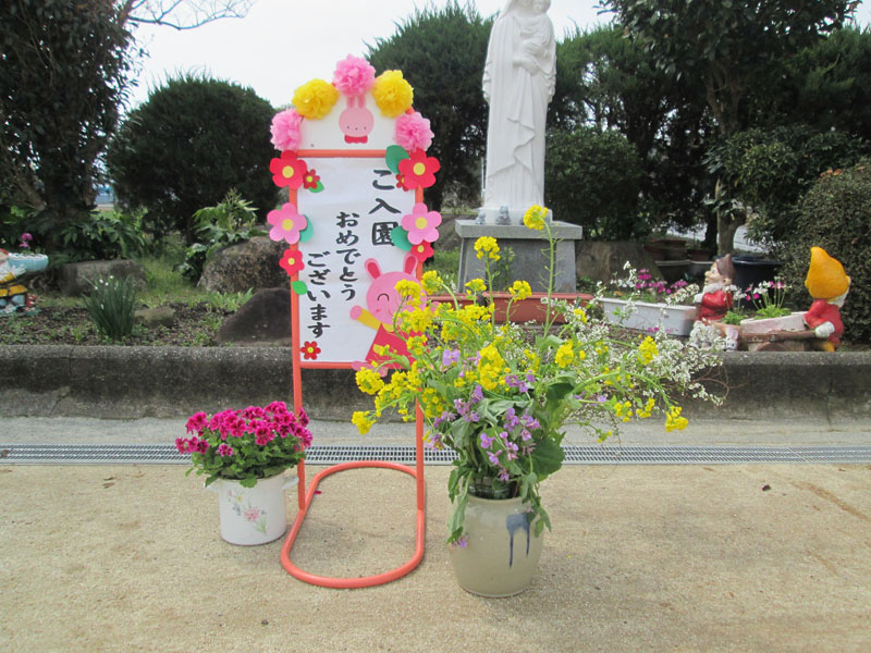エントリー あたらしい春 いろいろ 2017/04/21 14:25 まなざし 入学式の朝 親子で保育園のみんなにランドセル姿をみせてくれました。(おめでとう!りっぱな1年生になってね。)今年は保育園の玄関に端午の節句飾りが見られます。初節句のS君も段飾りの前でニコニコ顔保護者のNさんの計らいで田植えを体験することができました。 (どうか大きくなりますように!)今年もこいのぼりが元気に泳いでいます。子供たちも、風をうけて風車を楽しんでいました。 この記事のURL 新年度 始まりました 2017/04/08 14:50 まなざし 入園式 4月1日にありました。お庭のマリア様もみんなを待っていました。受付でもらった飾りを胸につけてもらいました。式に入る前に 手遊びを在園児と一緒に楽しみました。ドラえもんのふしぎなポッケトから 何がでてきたかな?新入児のみなさんにお迎えの言葉や歌を元気よく言えました。(分からない事あったら教えてあげてね!) この記事のURL