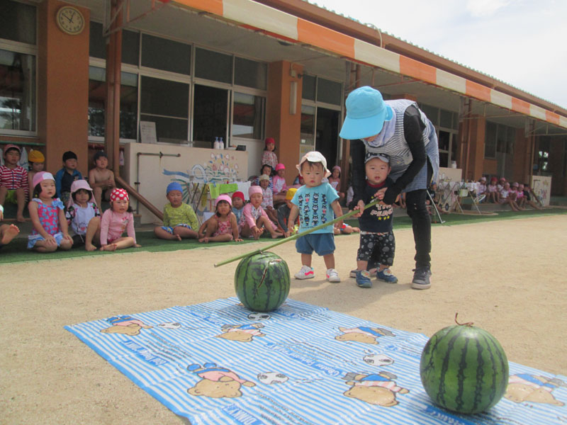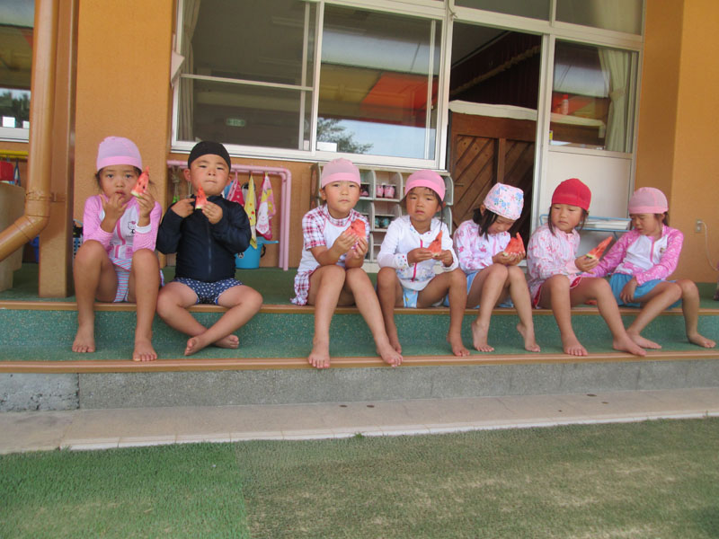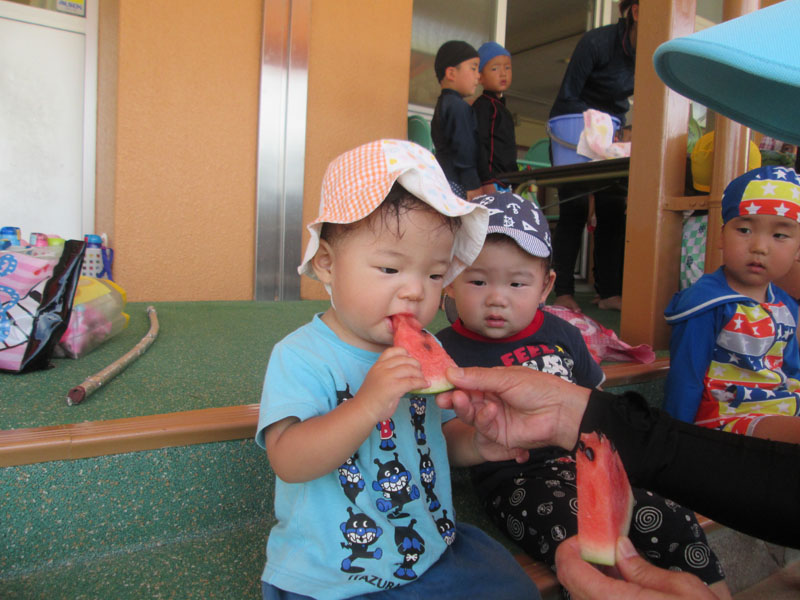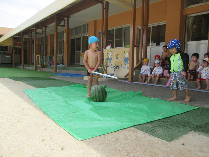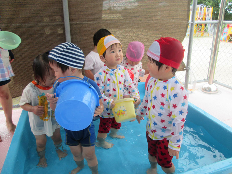 水の感触を体いっぱいで楽しんでいる子供たちでした。