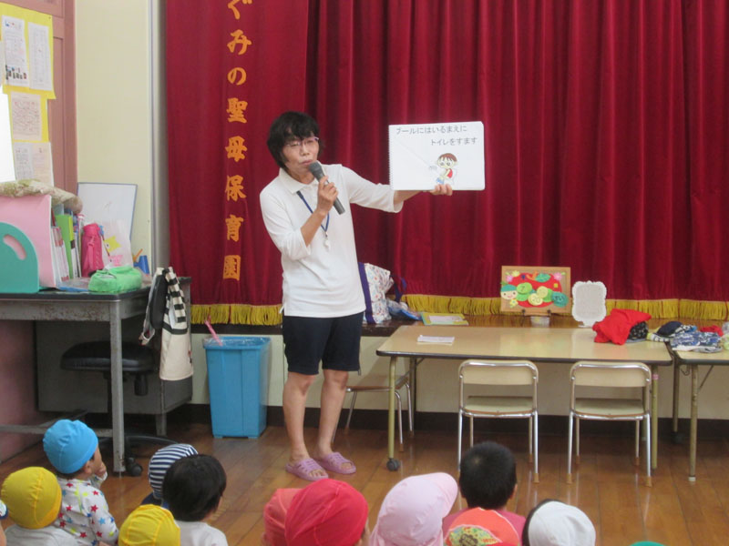 年長児の七夕ものがたりの後、全員で「たなばたさま」の