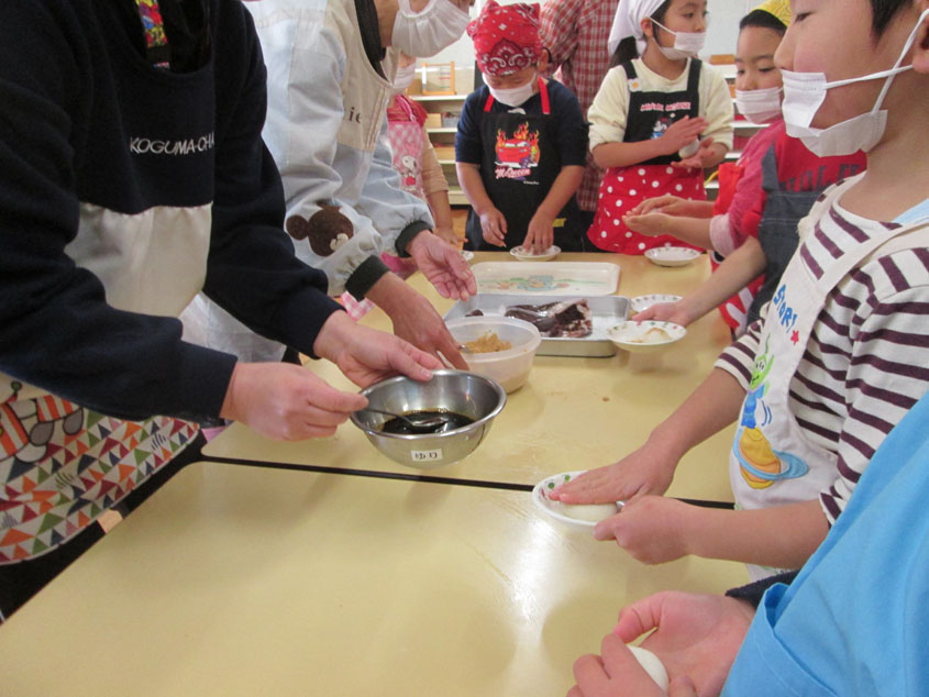 ボランティアの協力を得て、餅つきをしました。