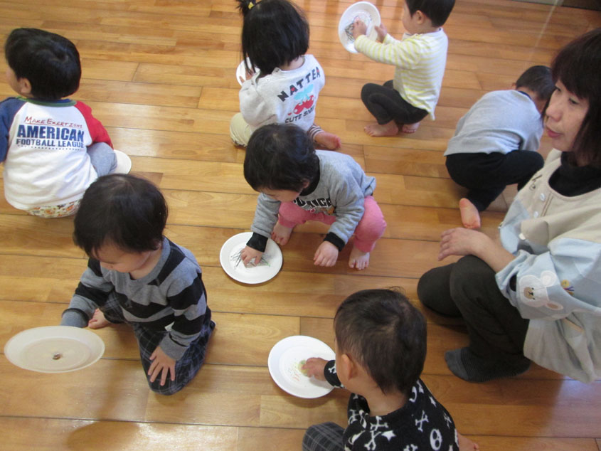 1歳児すみれ組ではお正月を楽しみました。
