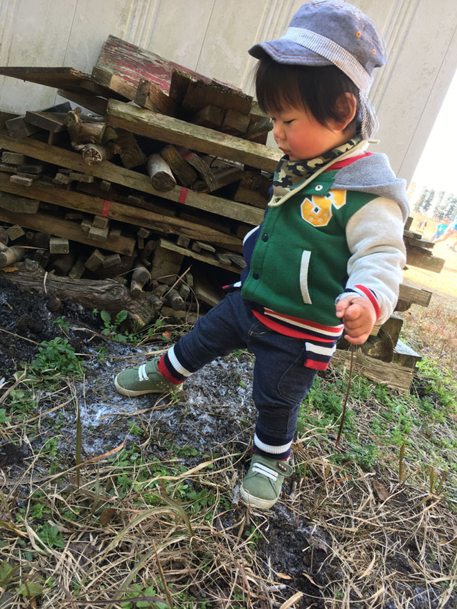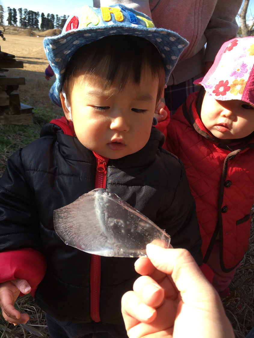 寒い朝 「ザクッザクッ」と霜柱を踏んだり氷に触ったり、