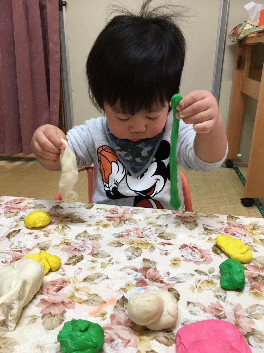 お部屋では、小麦粉年度をちぎったり丸めたり感触を楽しみました。