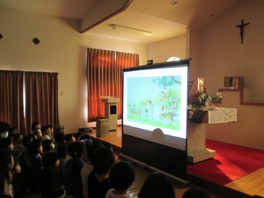 ドンボスコものがたりをプロジェクターで観て