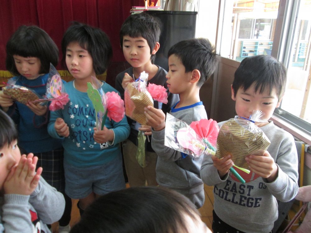 園長先生より一人ひとり証書を頂き緊張しました。在園児も共に歌や
