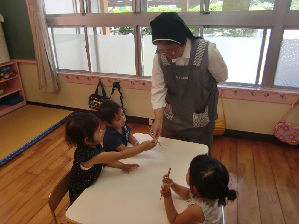 昨日おいでくださった保護者の方もいらっしゃいます!お父様や、お母様やおじいさまやおばあさまやおじさまやおばさまや…たくさんの人々の手によって子どもたちは保育していただいています。今日もマリア様の御手のなかで元気いっぱい過ごすことが出来ますようにお祈りします。作業のご協力ありがとうございました。