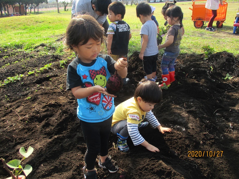 大地の恵みを握りしめて…、噛みしめて食べていました。
