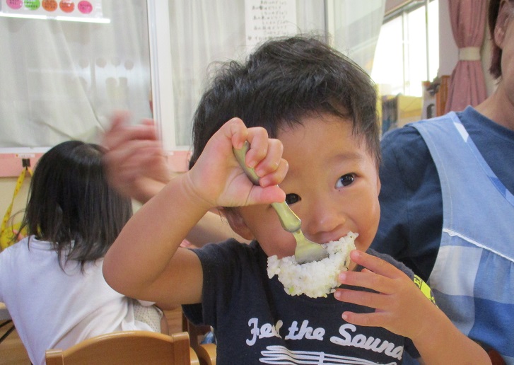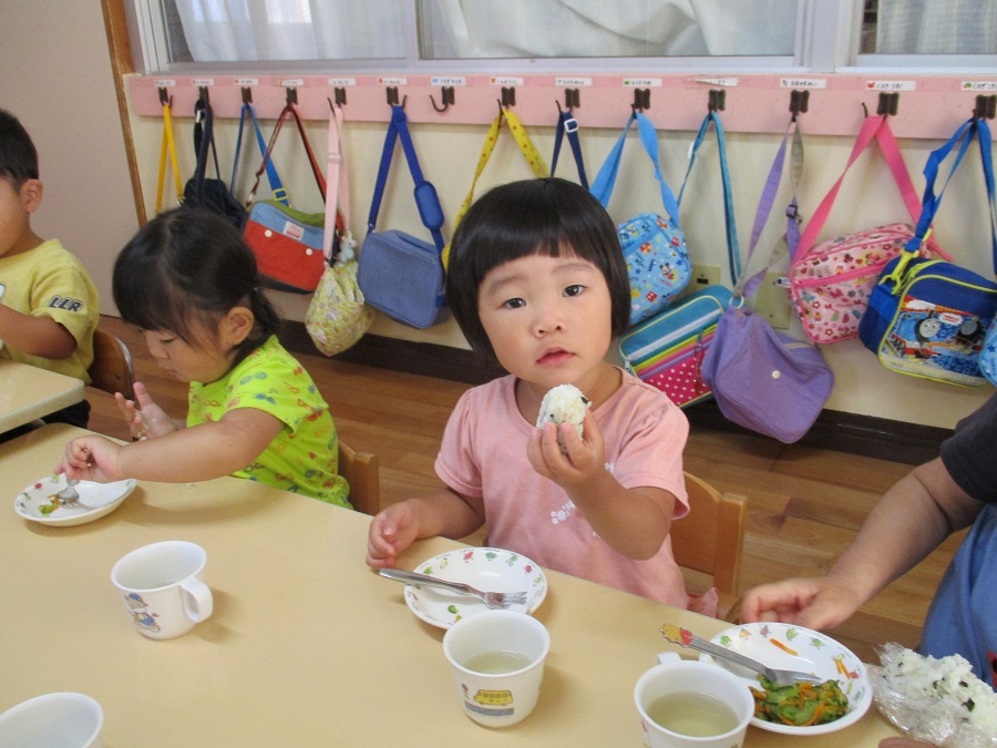 今日(10/6)のおやつはめぐみの聖母でできたお米の入ったおむすびでした!
