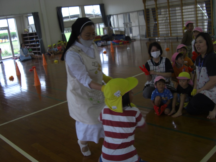 雨天時を想定して隣接するアントニオ修道院の横の体育館で運動会の練習が行われました。お外での練習でもそうですが、みんなが真剣に取り組んでいる姿が印象的でした。園長先生のお話も真剣に聞く姿!親子リレーの練習は今日は先生方が参加してくださり…運動会並みに楽しむことができました!当日はお天気になっても雨天であってもみんなが精いっぱい発表できるように、コロナ禍のためいろんな制限がありますがステキな思いでになるように励んでいきます。