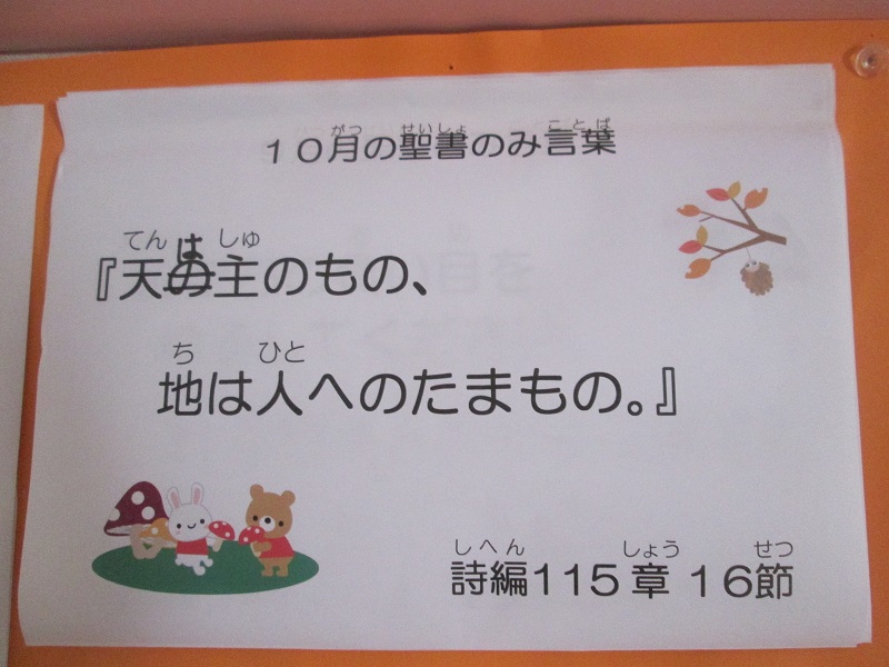 神様はこの世界をおつくりになった時、すべての物を祝福して「良し」とされました。神様の「良し」は需要と供給、全てにおいて調和のとれた他に比べる余地などない最高・最善の「良し」です。それを我々人類が破壊しつつあることを重く受け止めていかなければなりません。神様が賜物として与えて下さった地球を次の世代へ残していくために何ができるのか、私にできるSDGsを真剣に考えてみませんか。“私一人くらい・・”ではなく、“私一人でも・・!”小さなことをコツコツ続けていくということは、実はとても尊くて、素晴らしいことなのだということを、私たち「大人」が「子ども」に手本として示していけたらいいですね。
