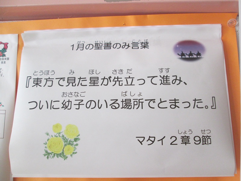 12月にイエス様をお迎えし、新しい1年が始まります。新しい年の初めに❝今年はこういう1年にしたい・しよう❞という抱負を立てても、日が経つうちに最初の熱意が薄れていく・・ということを大半の人が経験していると思います。占星術の博士たちは星に導かれて幼子イエス様のもとにたどり着き、自分たちの使命を果たすことができました。『インマヌエル』その名の通り、私たちと共にいて下さる神様はいつも先立って道を示し、目的地に着いたからと言って離れてしまわれることはありません。「これはどうしたらいいのだろう」「道を示してください」「どれを選ぶべきか?」心の中のつぶやきは神様に向かえば祈りとなります。新しい年をイエス様に頼り、一緒に歩んでいく、そんな年にしていけますように。