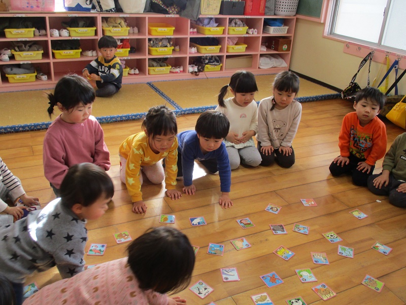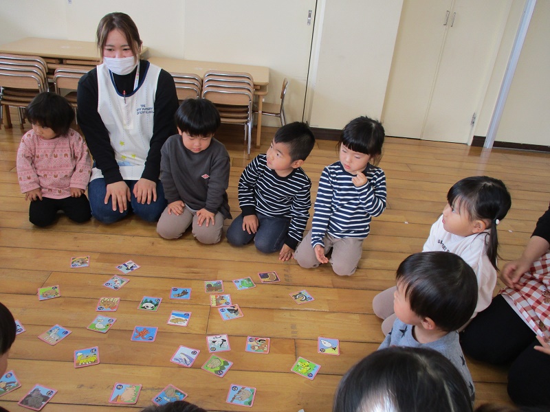 カルタ遊びを楽しみました。動物のカルタを使い、カルタのルールを知りました。