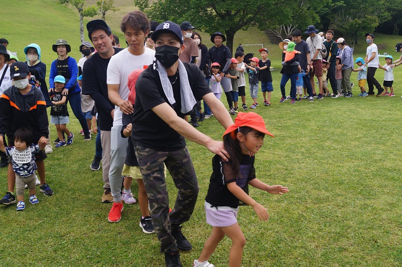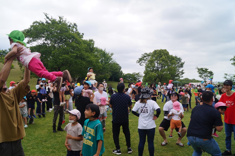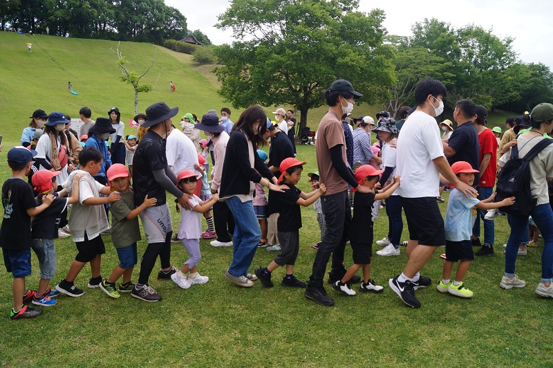 ジャンボリーミッキーを踊ったり、じゃんけん列車、スタンプラリーを親子で楽しみました。