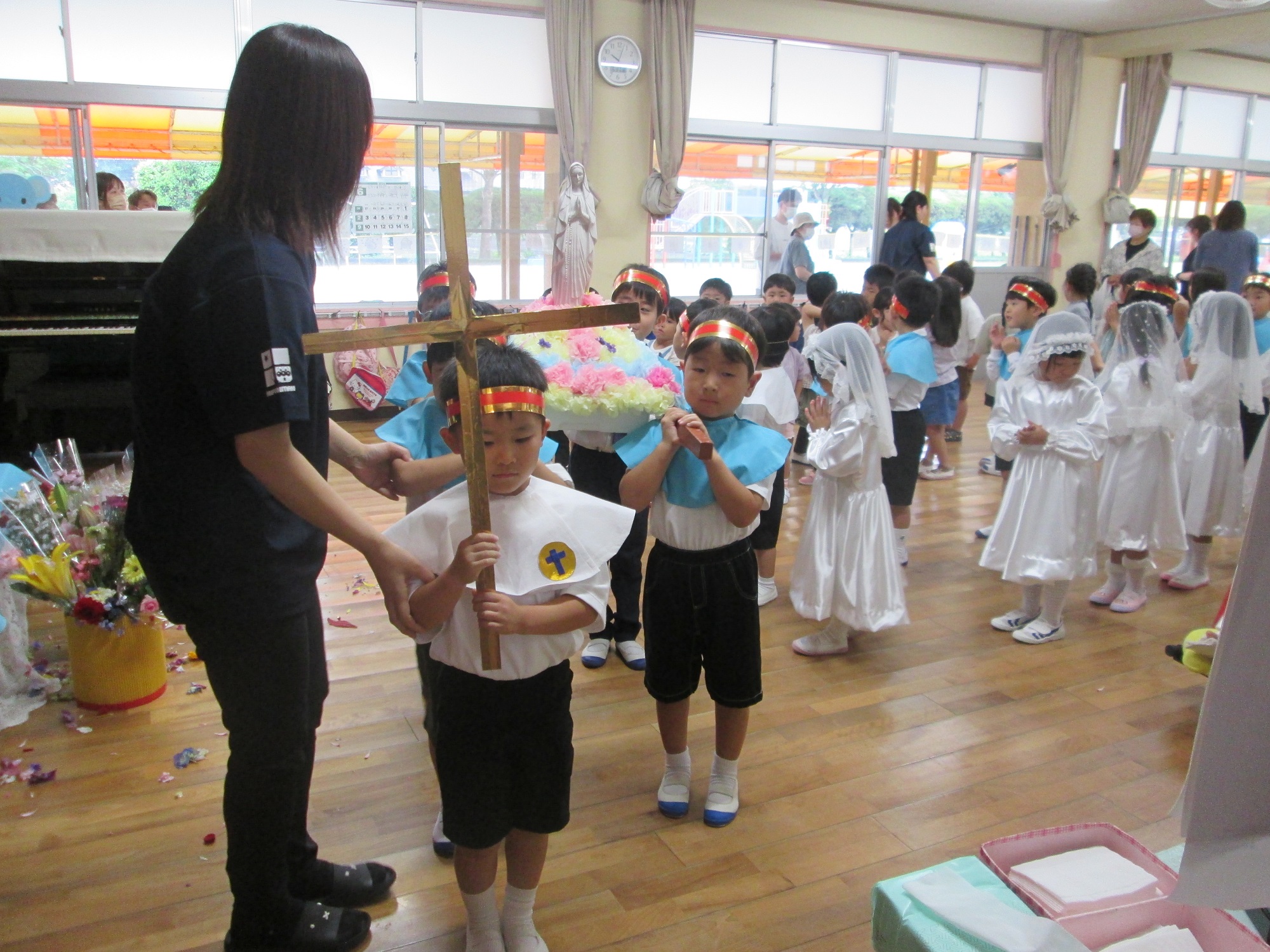 園児:「心を込めてお祈りをする」「友達に優しくする」・・・