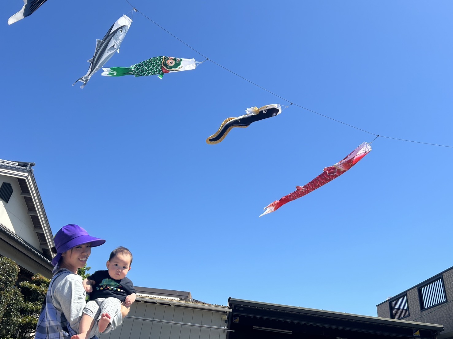 お弁当の日にお友達のおうちにあがっているこいのぼりを