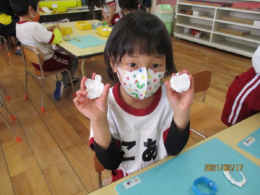 エントリー 粘土遊び くま(年少) 2021/02/25 16:06 4月の頃は「せんせい、アンパンマン作って―」「うさぎ作って―」など作ってもらうことの多かったさくら組さんですが、今では「せんせい、アンパンマン作ったよ この記事のURL ページ移動 記事一覧 ドンボスコのお祝い人参ゼリーを作ったよ!(きりん組)
