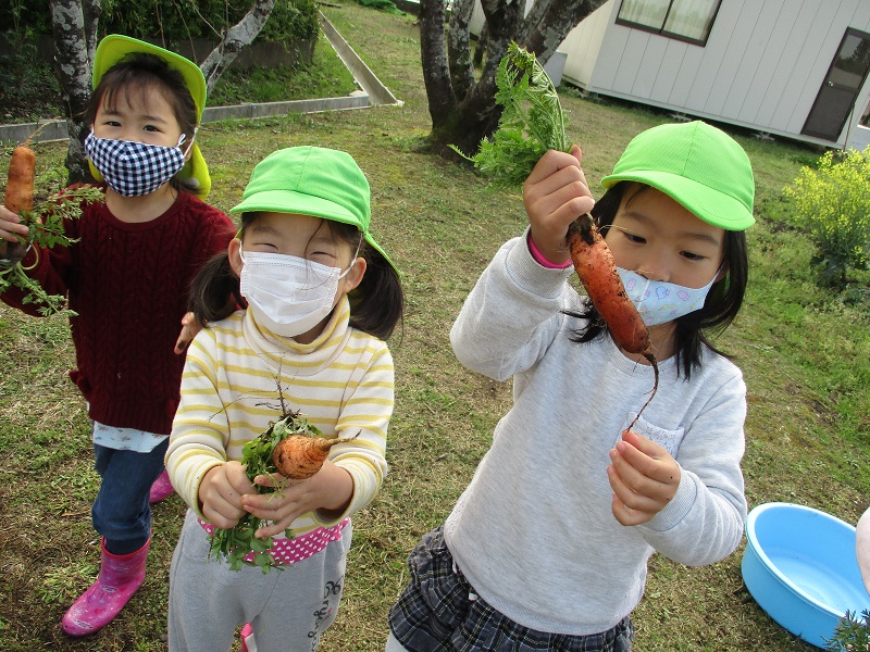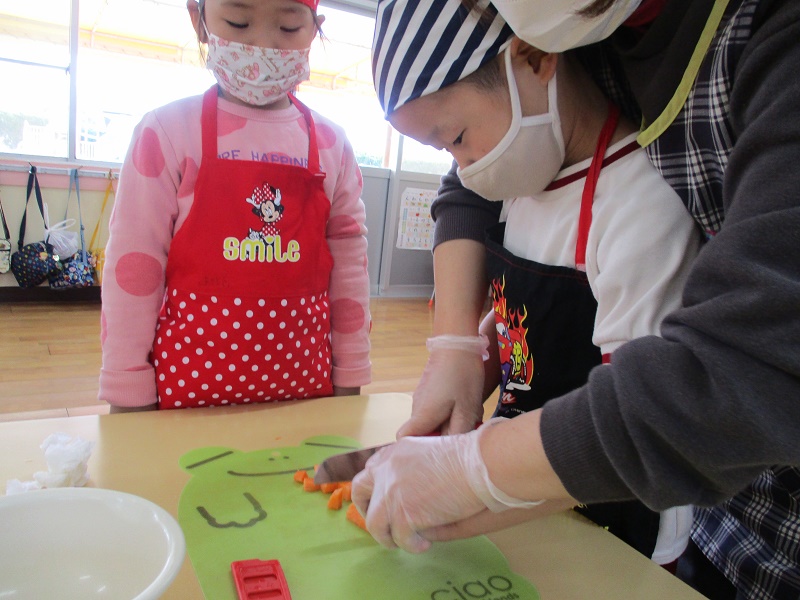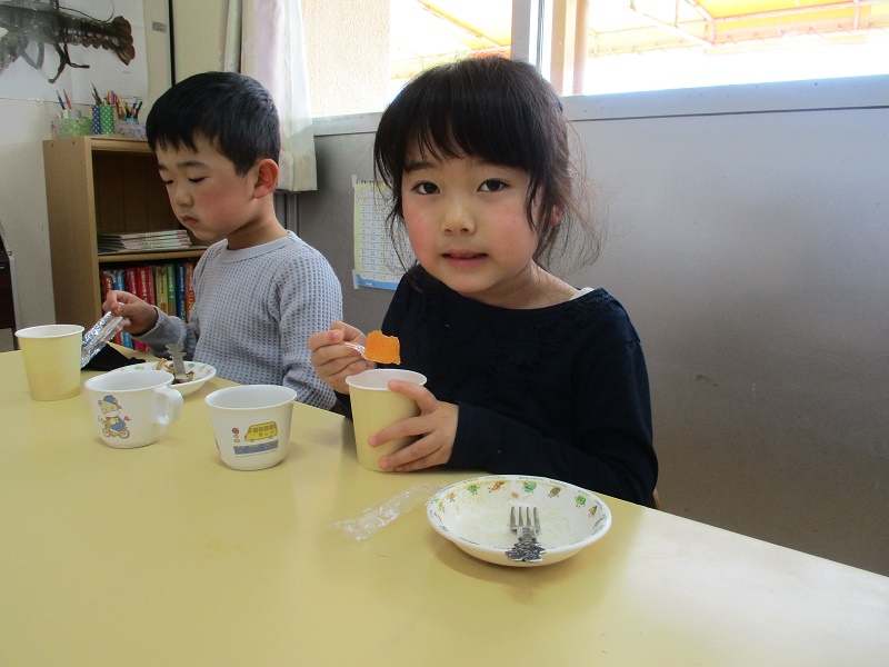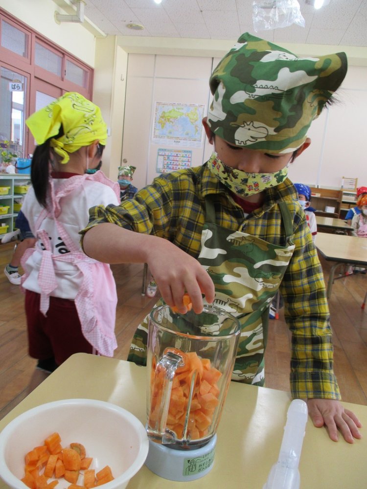 エントリー 人参ゼリーを作ったよ!(きりん組) 2021/03/25 10:18 畑で取れた人参を使って人参ゼリーを作りました。 人参を切ったり、材料を入れたり混ぜたりと調理の工程を楽しみました。 好き嫌いがあっておいしかったり、おいしくなかったりしたけど、 ゼリーは大成功でした。 この記事のURL ページ移動 記事一覧 粘土遊び くま(年少)竹の子見たよ!(うさぎ組)