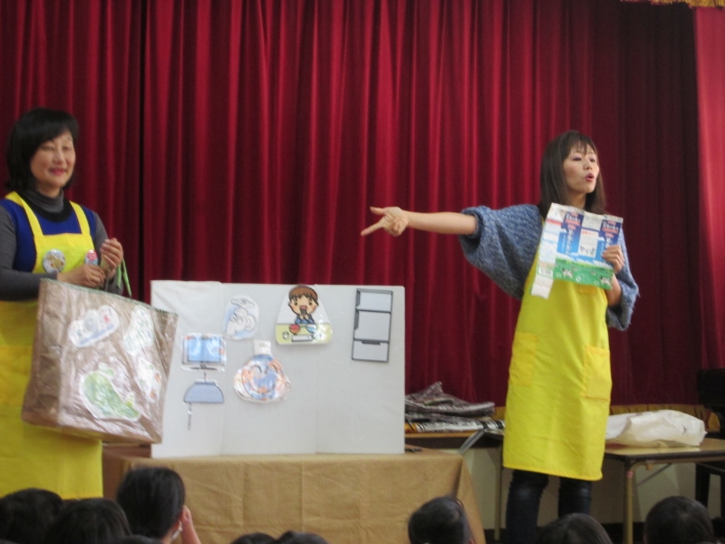 エコマザー教室がありました。ペープサートを使って分かりやすくエコについて学習しました。