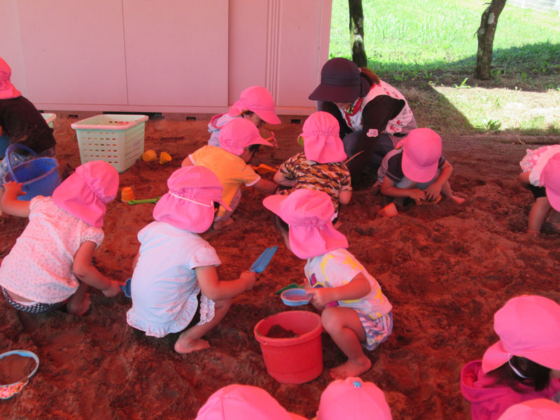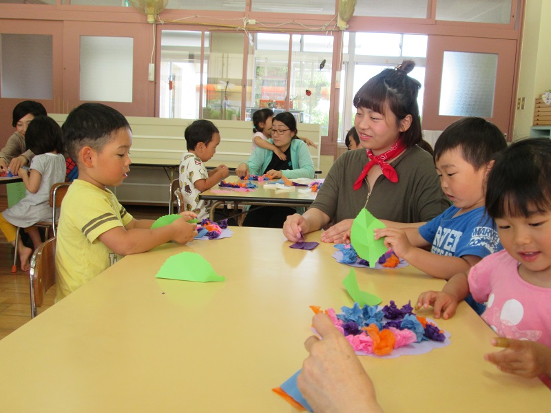 室内では小麦粉粘土を使い、親子で楽しみました。