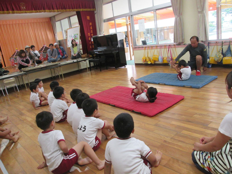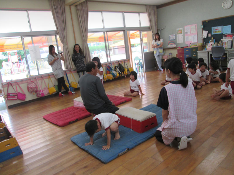 保護者が見ている中体操教室に参加しました。