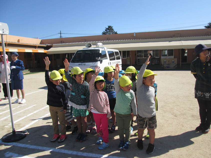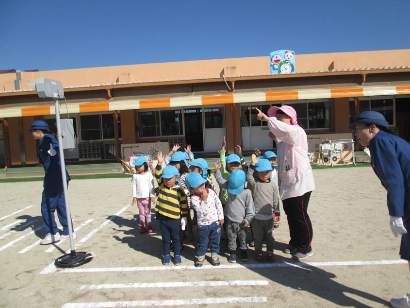 エントリー 交通安全教室 2017/10/31 10:00 まなざし 婦人警官の方がみえました。「まもりん」の人形での腹話術で交通ルールについて話を聞きました。質問に答える子ども できるニャン体操を元気にするみんな 園庭では信号機を使って、道路横断の仕方を習いました。 この記事のURL ページ移動 記事一覧 秋の遠足七五三おめでとう