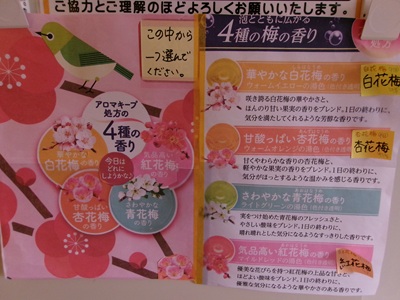 エントリー お楽しみ風呂 2026/02/09 12:50 今回のお楽しみ風呂は梅の湯 色々な種類の梅の香り… 今回は、利用者さんに度の香りが良いか、投票していただきました。 それぞれの梅の香りを楽しむ事が出来たお楽しみ風呂でした。 この記事のURL ページ移動 記事一覧 絵手紙クラブ観梅