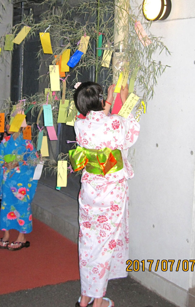 笹の葉にお願い事をつるし、希望する子どもたちは浴衣を着て