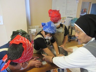 栄養士のシスターに教えてもらいながら