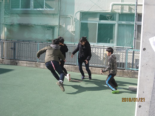 チームに分かれての「しっぽ取りゲーム」