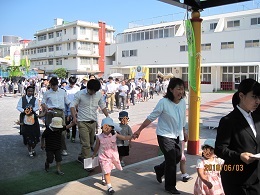 園庭も使って準備や花まきなど、職員も子どもたちも協力し