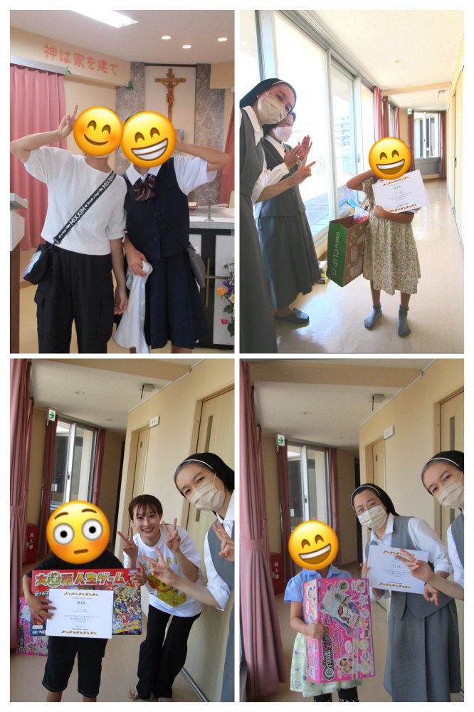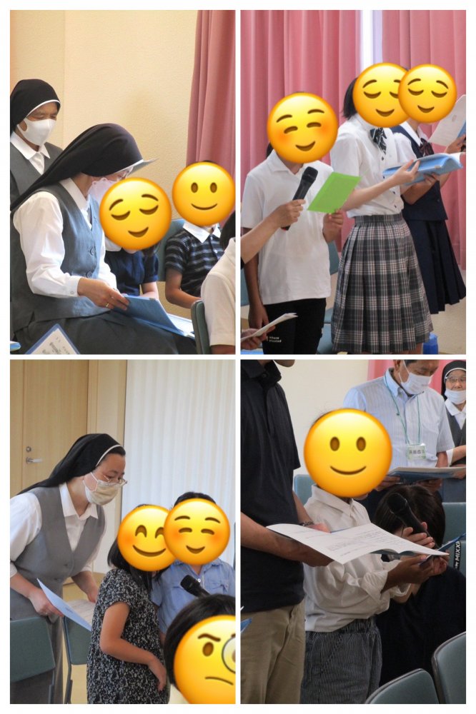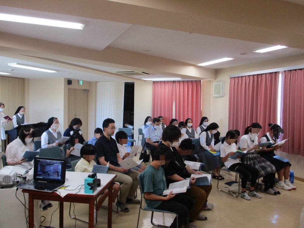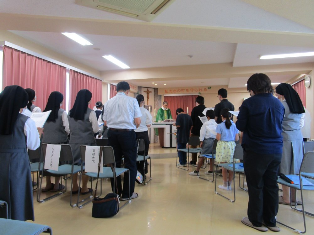 第1部に神父さまをお迎えして集会室(聖堂)でミサを行い、皆でお祈りしました。