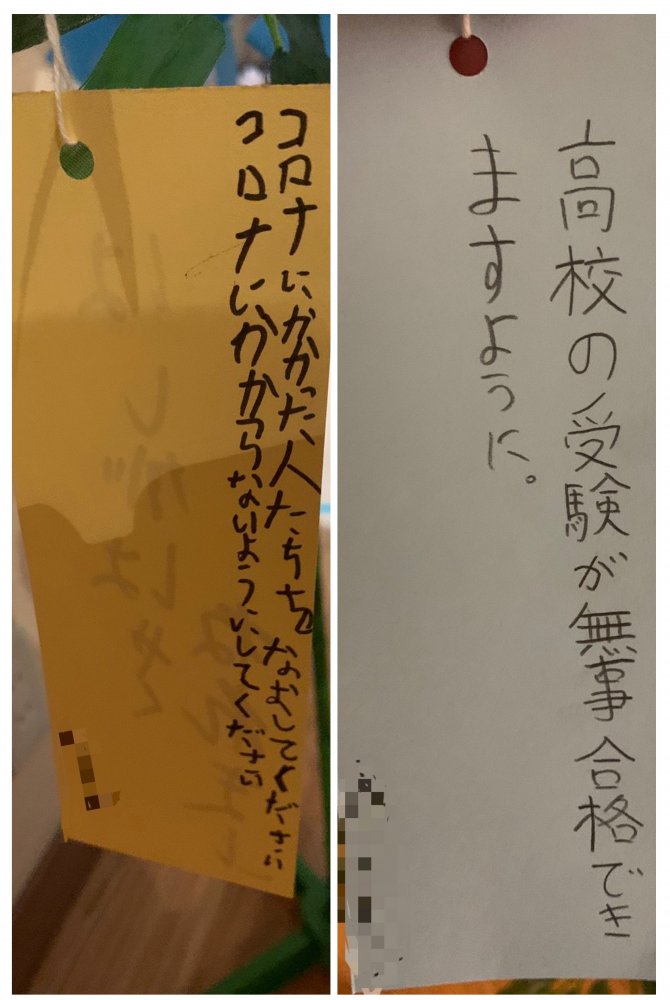 小学生から高校生まで、それぞれが思い思いに書いた願い事は