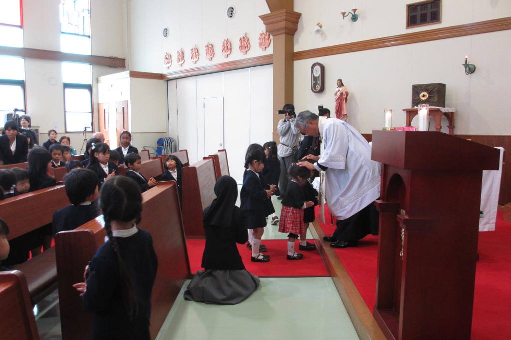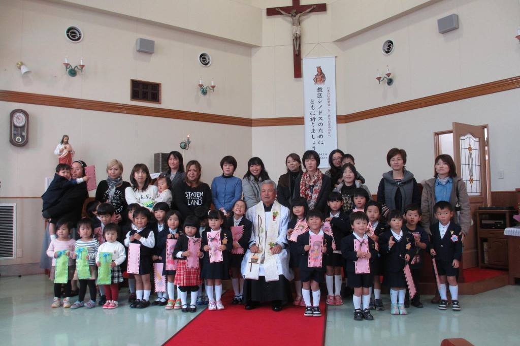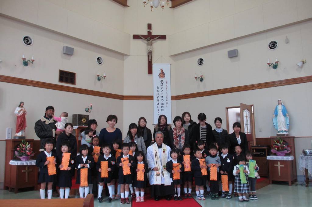 子どもたちと一緒に様々なことで苦しんでいる人、幼稚園の先生、神父様、大好きなお父さんやお母さんに多くのお恵みがあるようにお祈りをしました。