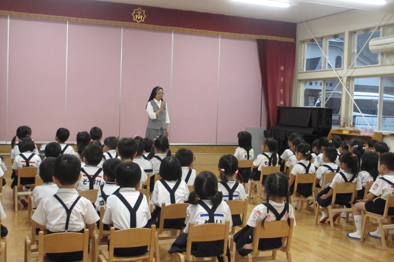 でもホールでマザーテレサのおはなしを聞いて