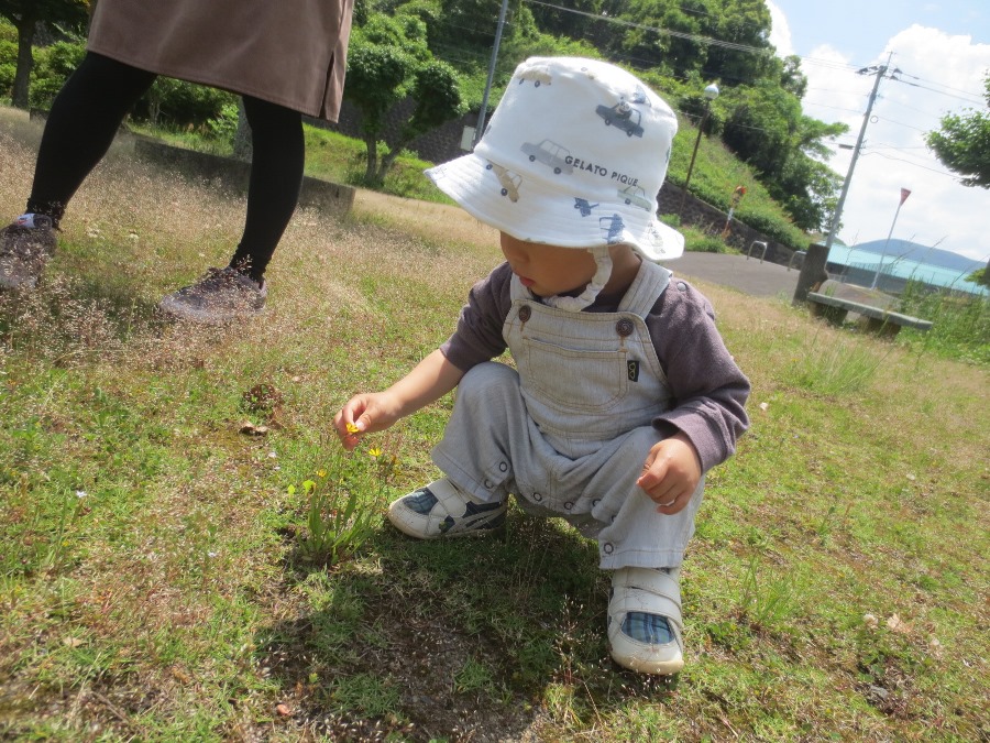 散歩では岩下公園で滑り台をしたり、きれいなつつじを見たり