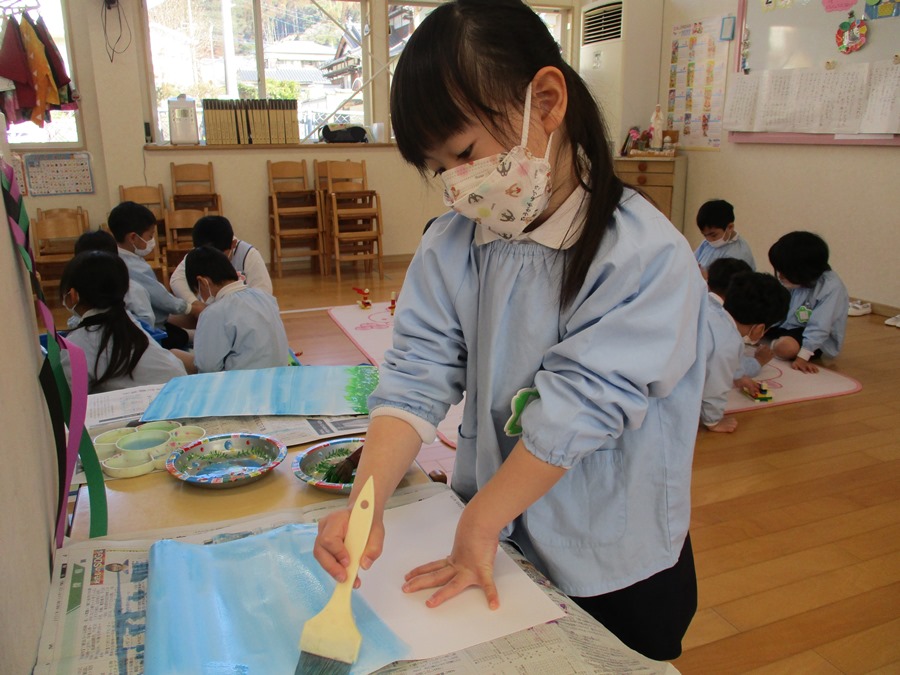絵具を使った製作にも挑戦です。