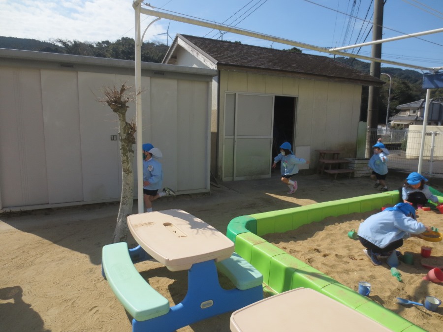 お外遊びも楽しくやっています。