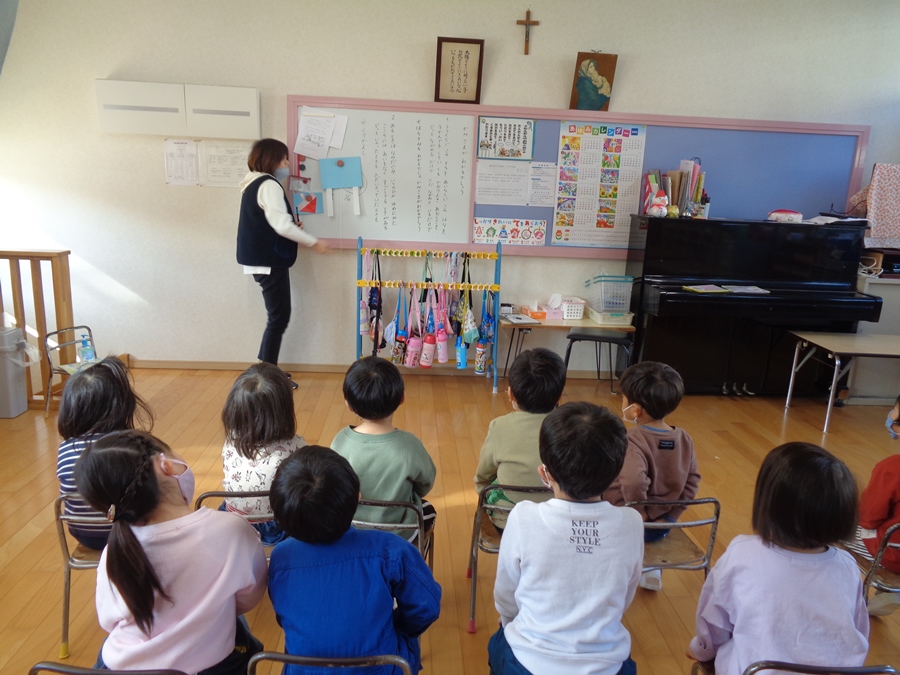 横割り活動では節分のお話・歌・豆まきの活動を行いました。