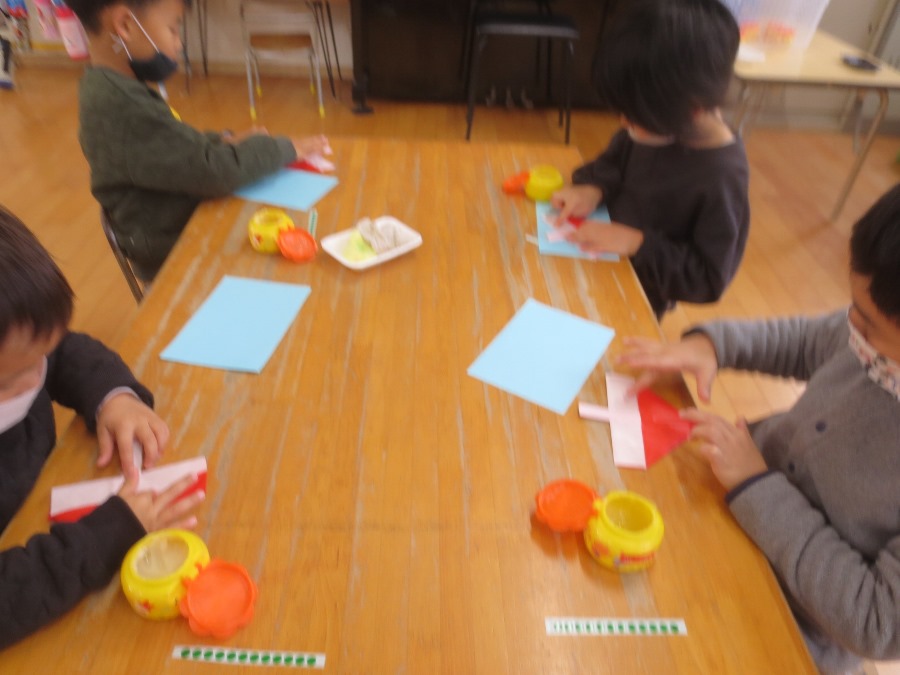 冬休み最後の預かり保育では凧の製作を行いました。