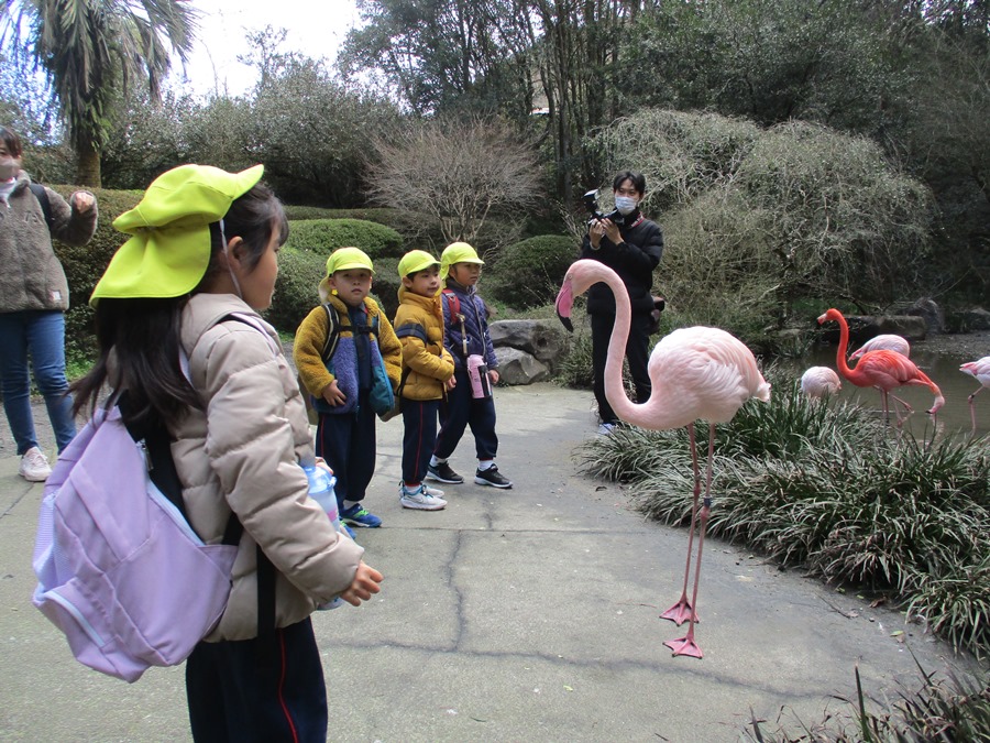 餌を持っていると思った”フラミンゴ”がどんどん子どもたちの近くへ!