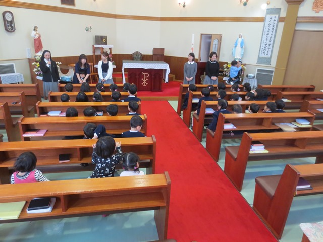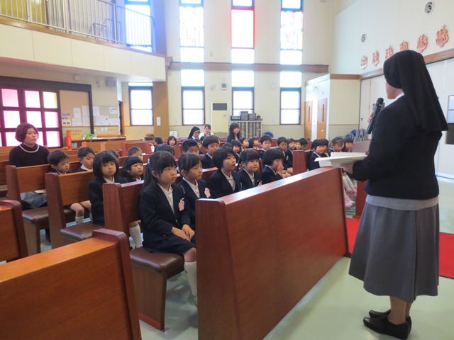 教会で行われた始業式では、園長先生から