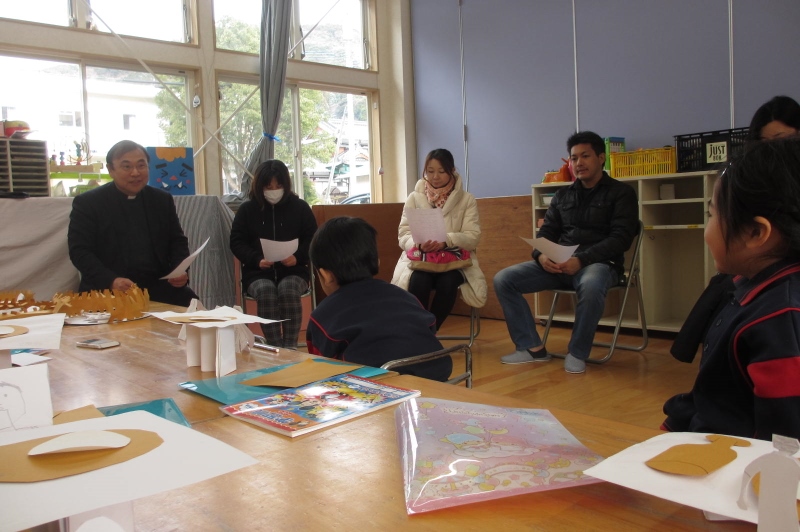 新聞紙を丸め雪に見立てて雪合戦をしました(^ω^)