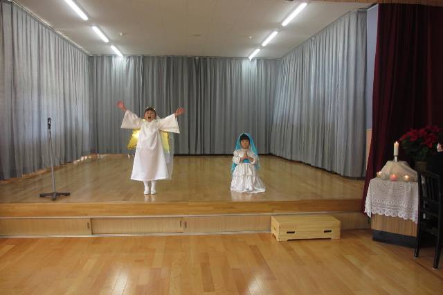 年長組を中心としたイエス様の誕生の物語をご覧いただきました。