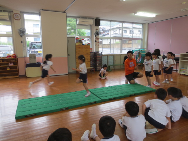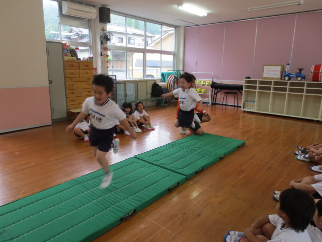 年長組は簡単なジャンプから・・・頑張ってやっています。