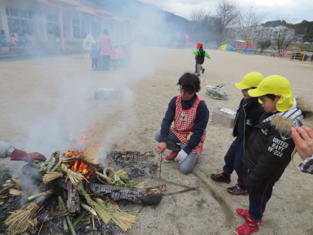 青い実幼児園にて、鬼火たきに参加しました。